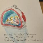 Manche Besucher sind begeistert von der Vielfalt der unterschiedlichen Krippen und Ländern ihrer Herkunft. Manche sammeln selbst Krippen oder einzelne Engelfiguren und holen sich Anregungen für ihre eigene Sammlung. Wieder andere freuen sich über die Schönheit der Figuren und skizzieren einige davon in ihr persönliches Reise- bzw. Tagebuch. So malt eine Dame mit dem Namen Marta die folgenden zwei Bilder in ihr Tagebuch: